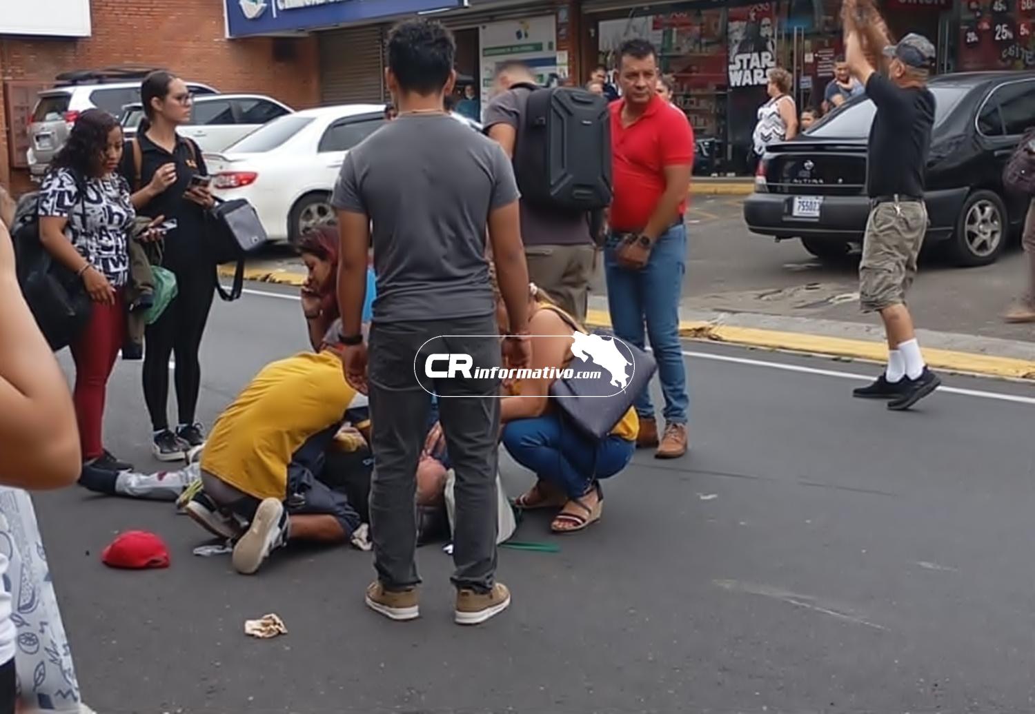 Un lamentable incidente ocurrió esta tarde en las cercanías del Mercado Central de Alajuela, donde un adulto mayor fue atropellado por una motocicleta. El accidente se presentó aproximadamente a 100 metros al sur del mercado, afectando el tránsito en la zona.