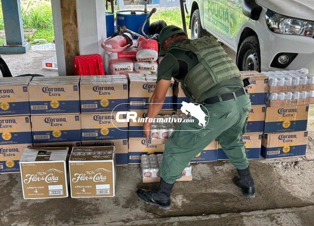 Oficiales de la Policía de Fronteras, destacados en Sixaola, cantón de Talamanca, Limón, siguen sin dar tregua a las organizaciones delictivas que evaden impuestos mediante el contrabando de licores.