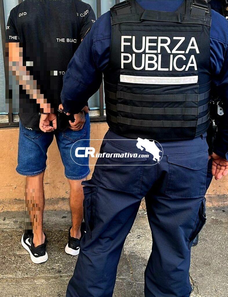 Un sujeto de nacionalidad costarricense fue ubicado y aprehendido por los oficiales de la Fuerza Pública del Ministerio de Seguridad Pública, ya que contaba con una orden de captura por el delito de amenazas en contra de una mujer.
