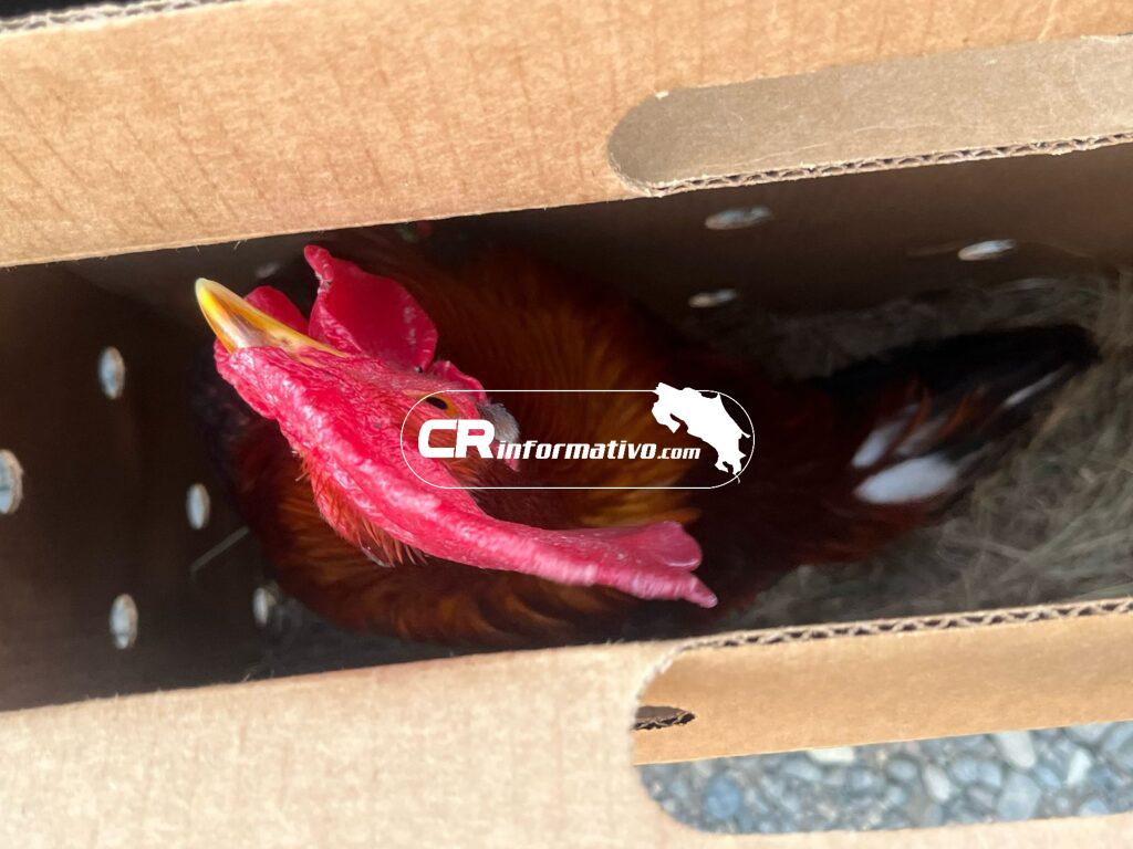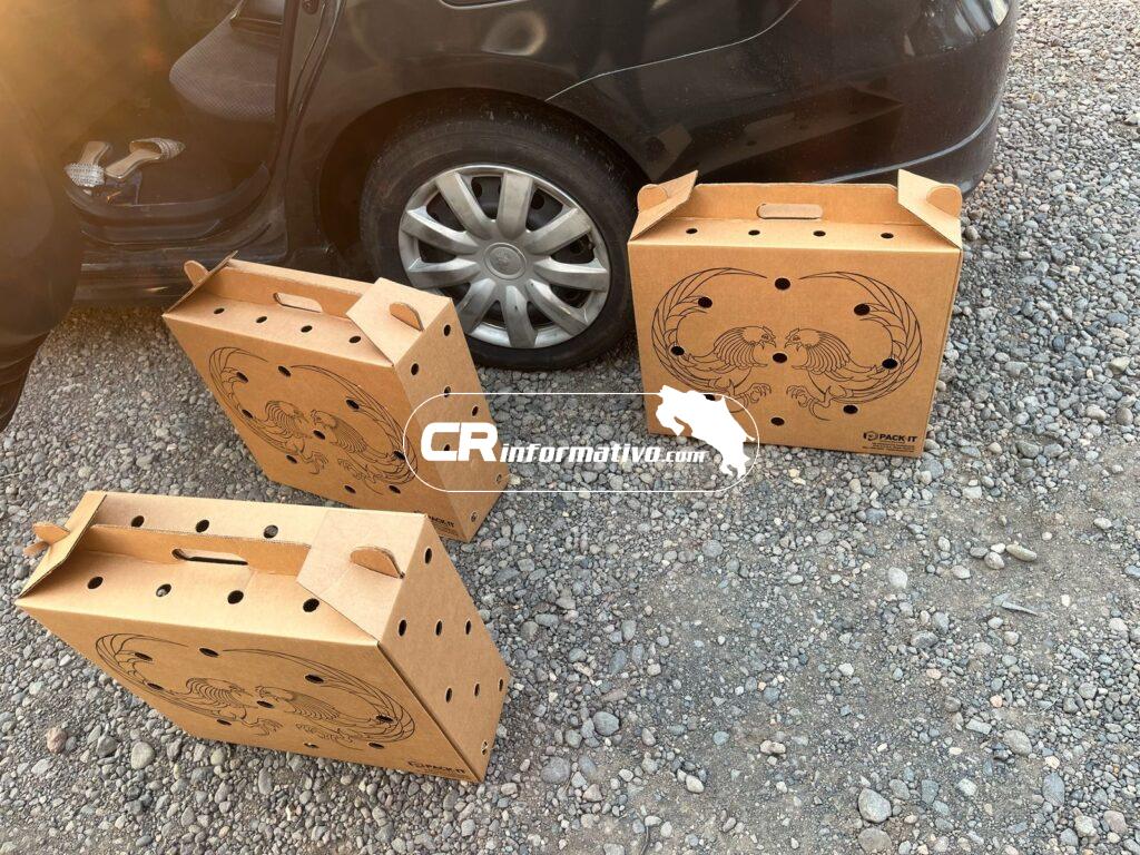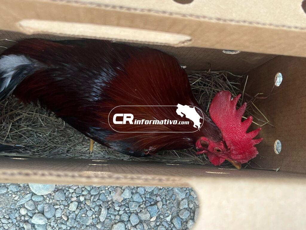 Durante un control vehicular realizado en la Ruta 34, en Orotina, oficiales de la Fuerza Pública al abordar un vehículo y consultar al conductor de apellido Rojas, de Paso Canoas, Corredores, si transportaba algo que pudiera comprometerlo, admitió portar tres gallos de pelea en tres cajas diseñadas para su traslado.