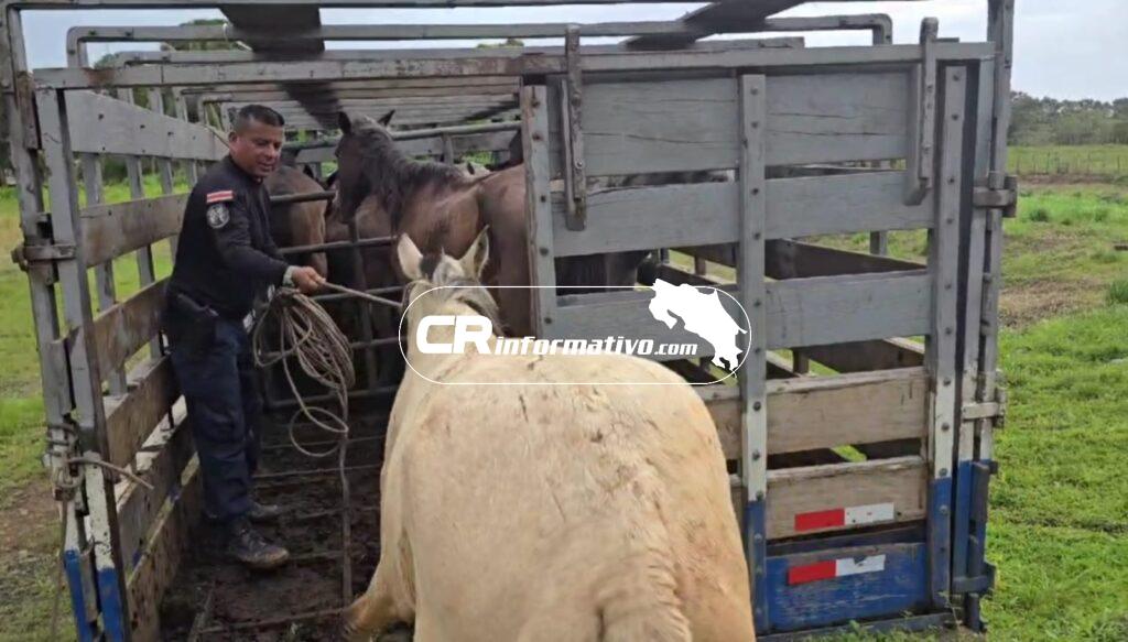 Fuerza Pública evita que 13 equinos y tres mulas en condiciones deplorables fueran comercializados en el país