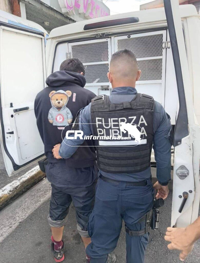 Los detenidos son dos hombres de apellidos0 Calderón y Mora, quienes fueron detenidos tras una persecución policial e intercambio de disparos en el distrito de Aguas Zarcas.