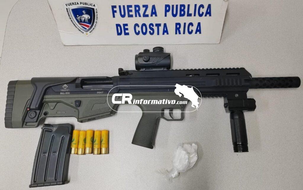 Se trataba de una escopeta, siendo que este tipo de arma no necesita permisos, pero deben estar inscritas y la que portaba el sujeto no lo estaba, informó la Fuerza Pública de San José.