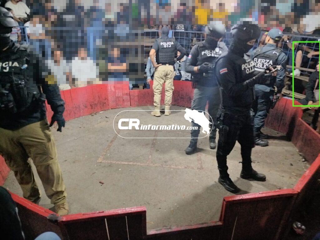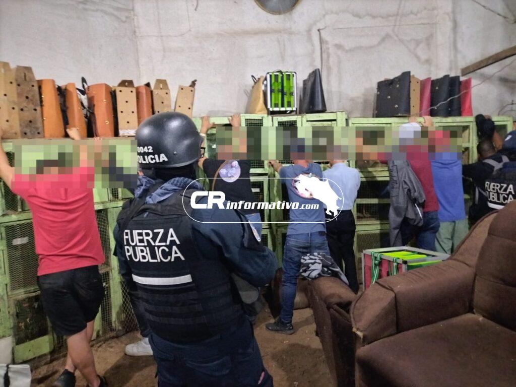 En una contundente acción, la Fuerza Pública, el OIJ y funcionarios de SENASA allanaron un complejo estructural donde realizaban peleas de gallos.