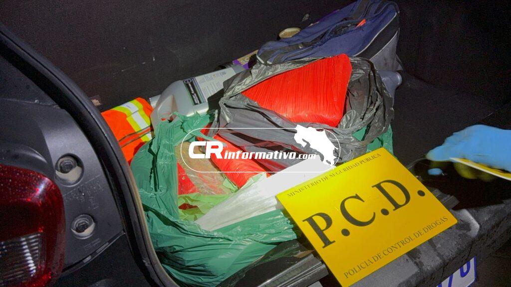 La detención se realizó en Taras, en el distrito de San Nicolás, en la provincia de Cartago, cuando los policías recibieron una alerta de que el automotor podría llevar estupefacientes, por lo que se procedió a su ubicación y detención.