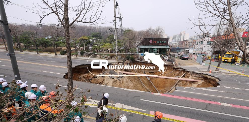 Un enorme socavón de aproximadamente 20 metros de diámetro y 20 metros de profundidad se abrió súbitamente en una intersección en el este de Seúl, Corea del Sur, atrapando a un motociclista que circulaba por la zona.
