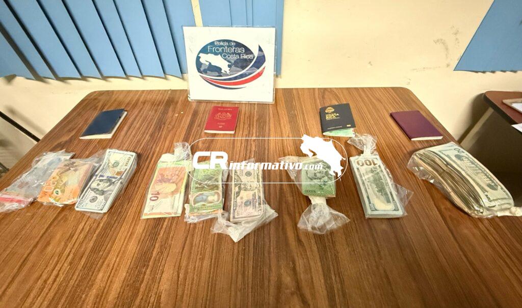 En el marco de las acciones que realiza la Policía de Fronteras, para detectar y prevenir todo tipo de actividades ilegales transfronterizas, cuatro personas fueron aprehendidas con el equivalente a 11,3 millones de colones en dinero nacional, estadounidense, europeo y nicaragüense.