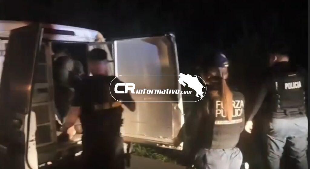 Monestel detalló que las acciones policiales permitieron interceptar, en la localidad de Ticari, distrito de Horquetas de Sarapiquí, el vehículo Toyota Prado con ocupantes, los cuales son un adulto de apellido Alvarado y un joven de 17 años, quienes fueron aprehendidos.