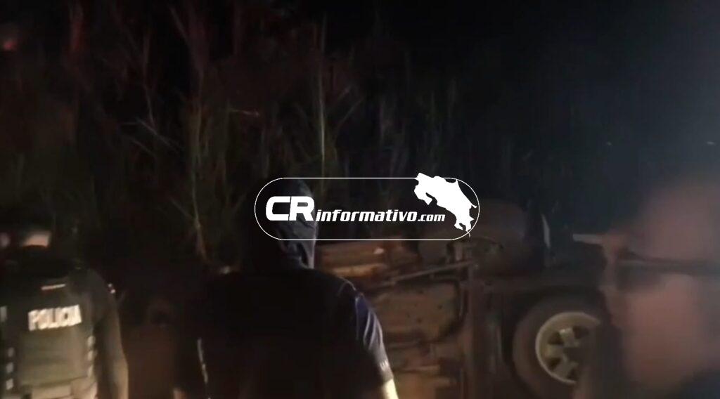 Siempre en esa misma ruta, pero en la llamada Vuelta del Tigre, la Fuerza Pública encontró volcado el Toyota Hi Lux, ya que, ante el temor de ser detenidos, los ocupantes del auto perdieron el control, volcaron y luego huyeron del sitio.