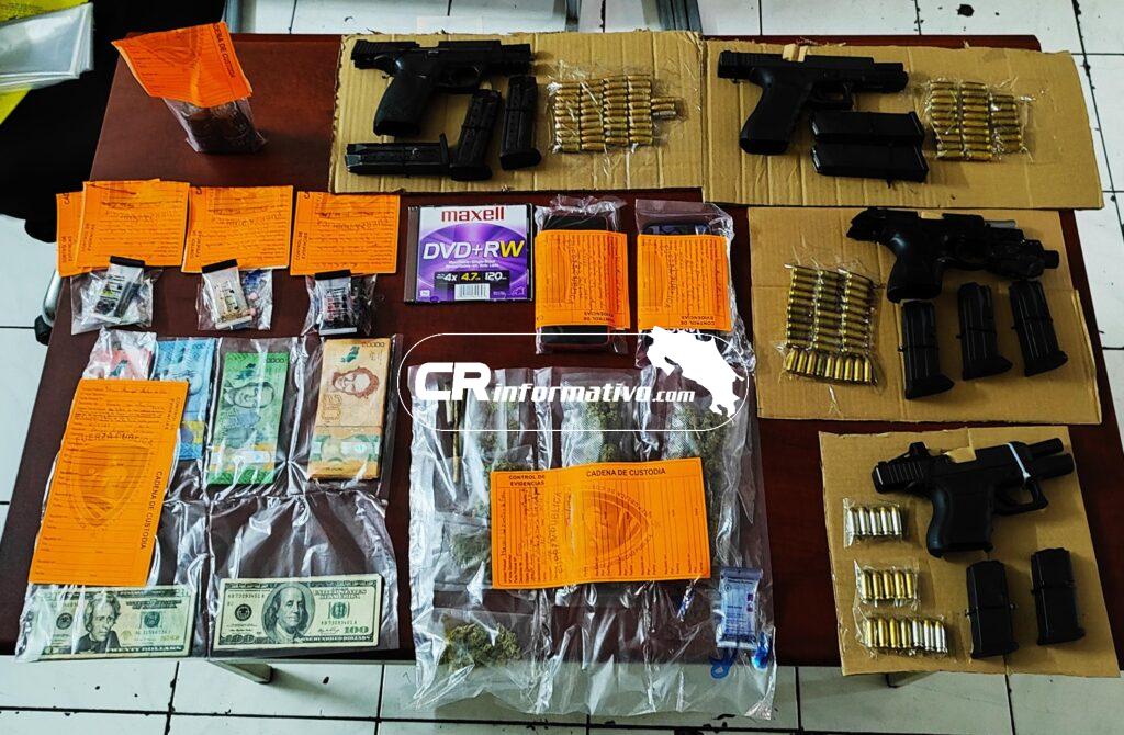 La evidencia fue entregada a las autoridades judiciales. La Policía también logró, en las últimas horas, la incautación de 4 armas de fuego en el cantón de Montes de Oca y 2 en el distrito de San Sebastián.