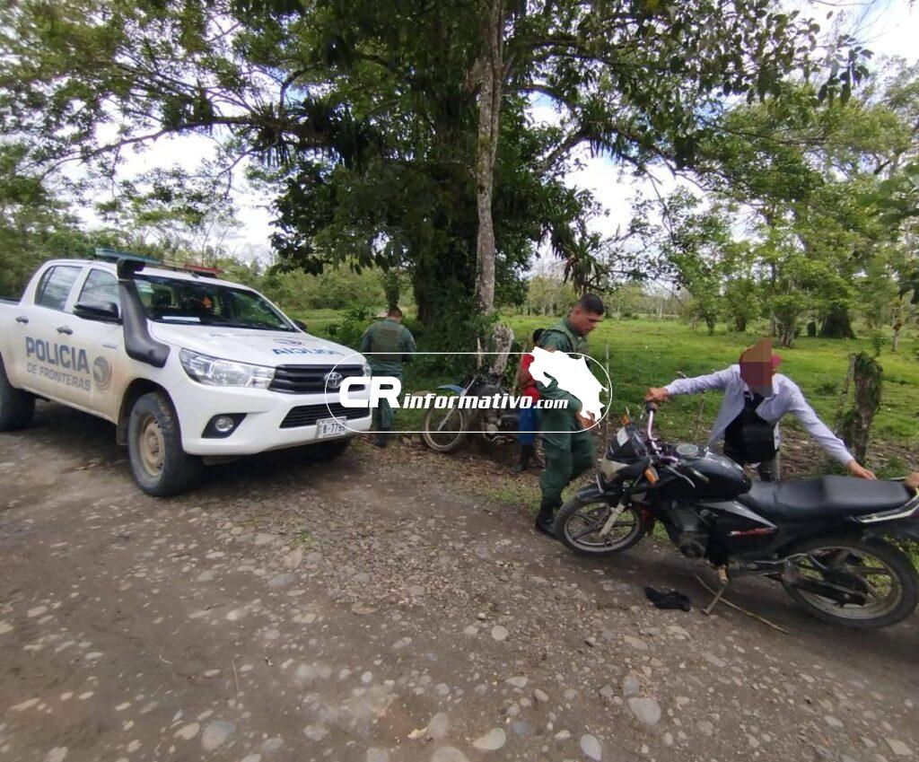 Gracias a tales acciones operativas, la Policía de Fronteras decomisó una motocicleta durante un control de carreteras efectuado en el cruce de Berlín, distrito de Delicias de Upala.