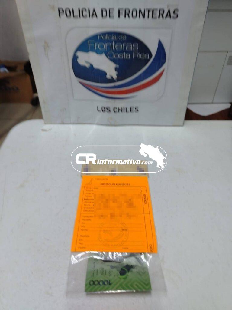 Tras ser abordado por varios miembros de la Policía de Fronteras, el sujeto les ofreció 10.000 colones para que no le decomisaran los diversos artículos que habían introducido ilegalmente al país, así como para que no lo remitieran a Migración.