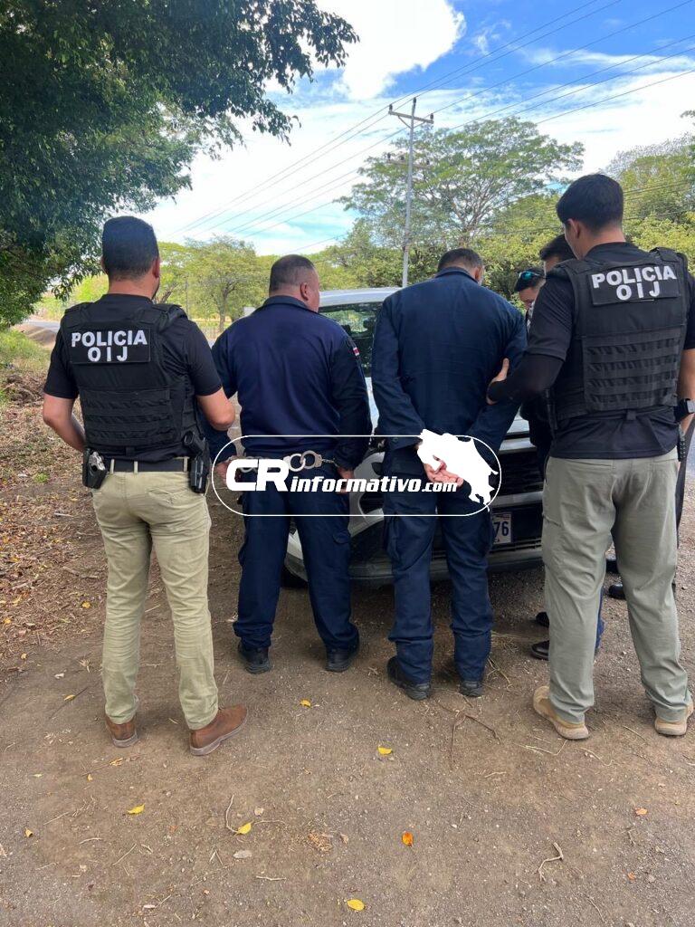 Agentes Judiciales destacados en la Delegación Regional de Santa Cruz del Organismo de Investigación Judicial (OIJ) detuvieron esta mañana al ser las 10:35 en el sector de la entrada a Rancho Cartagena en Guanacaste a dos sujetos de 49 y 52 años, ambos como sospechosos del aparente delito de Concusión.