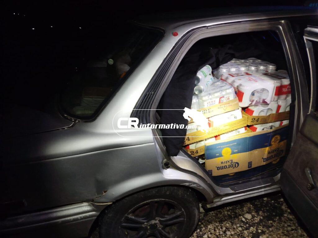 Luego de lograr que se detuviera, los oficiales de la Fuerza Pública llevaron el auto sospechoso hasta el puesto de Kilómetro 35 para revisarlo detenidamente, pues a simplemente vista se observaban gran cantidad de licores a bordo.