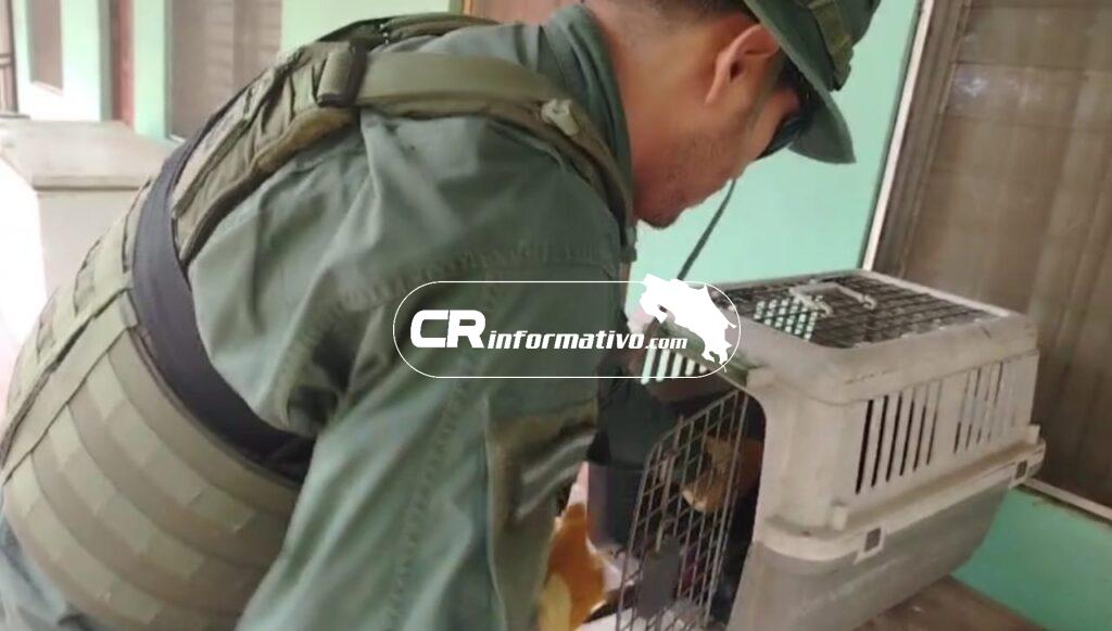 El animalito se mostró sumamente agresivo con los oficiales fronterizos, por lo que, con suma cautela, lo atraparon para llevarlo hasta el Parque Nacional Santa Rosa, donde fue entregado a guardaparques del Sistema Nacional Áreas de Conservación (SINAC).