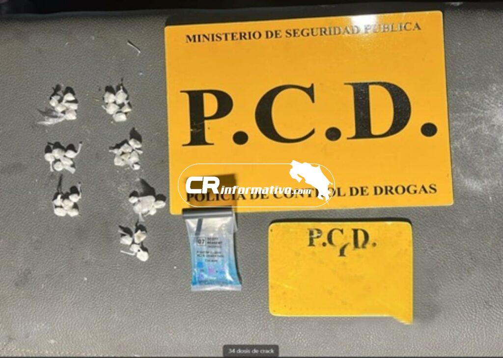 A ellos, los agentes antidrogas les decomisaron 67 dosis de crack, 17 envoltorios con marihuana y 14 mil colones en efectivo, así como implementos para la preparación y dosificación de drogas.