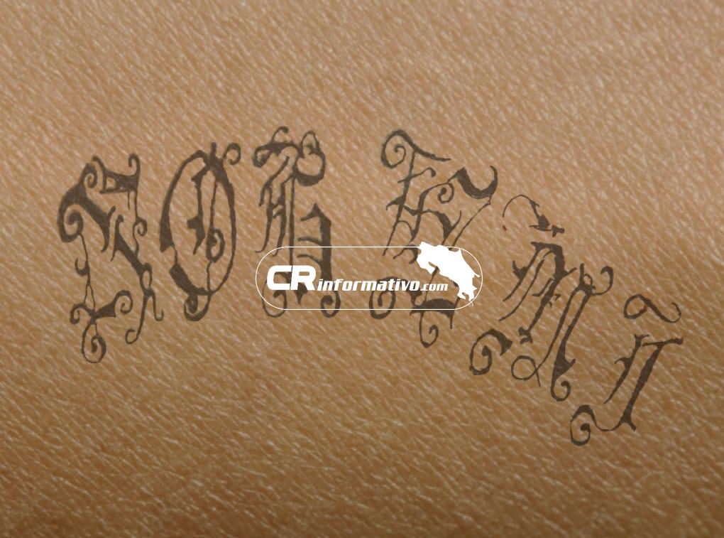 un tatuaje con el nombre NOHEMI, en el tórax.