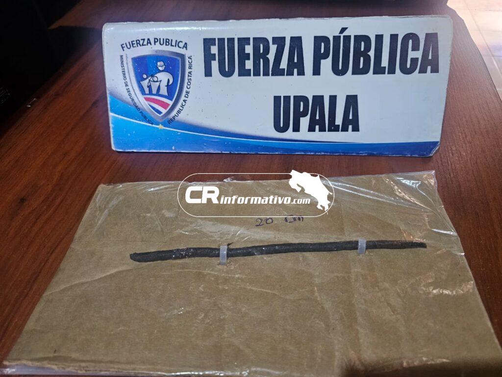 El sujeto portaba un punzón metálico de unos 20 centímetros de largo, el cual le fue decomisado y, bajo la dirección funcional de la Fiscalía de Upala, el sujeto fue aprehendido y trasladado a la orden de dicha autoridad judicial.