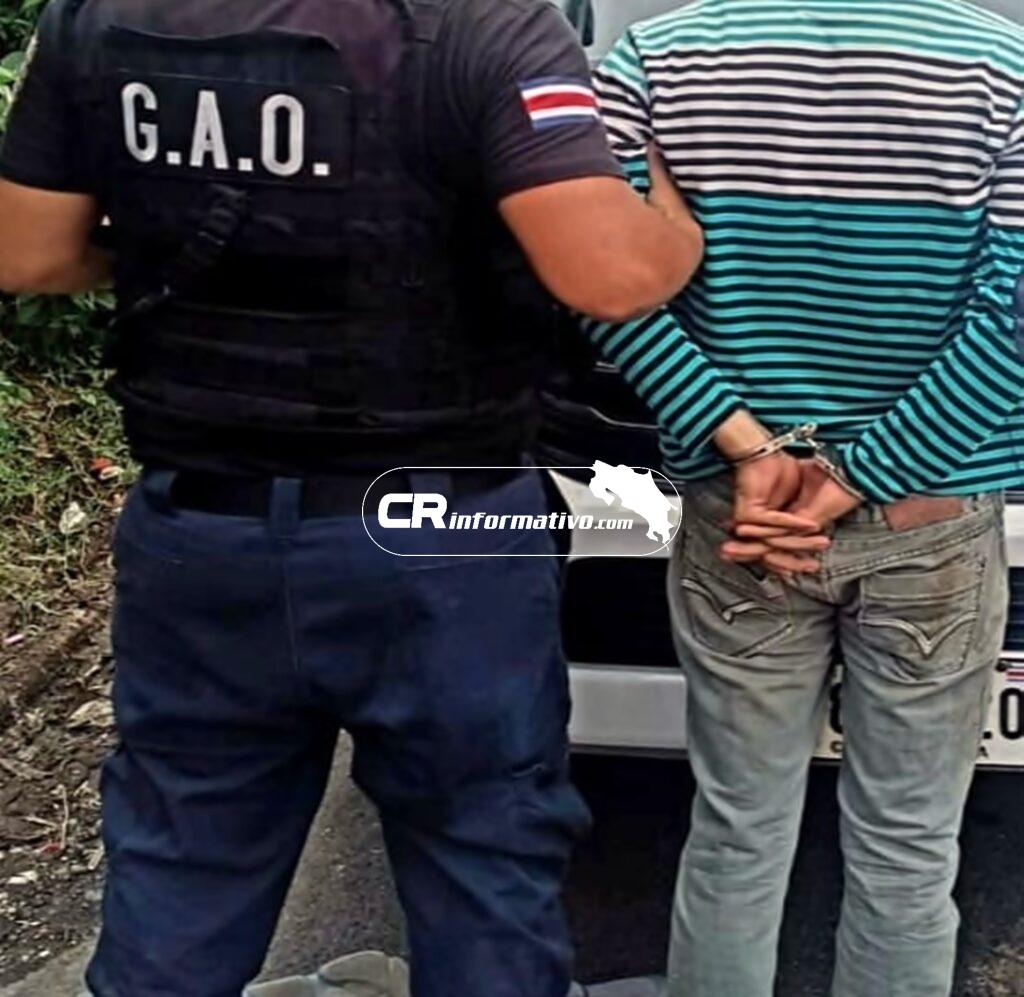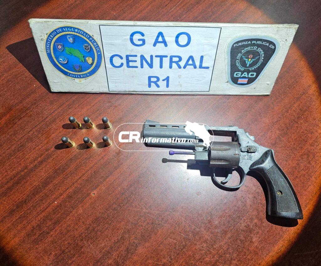 Hoy, los oficiales del Grupo de Apoyo Operacional (GAO) de la Fuerza Pública, dirección policial adscrita al Ministerio de Seguridad Pública, aprehendieron a un sujeto y decomisaron un arma de fuego.