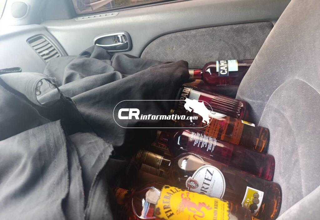 Tras una minuciosa revisión de su auto, las autoridades encontraron 691 unidades de licor variado sin la documentación que respaldara el debido pago de impuestos y sin el etiquetado de ley.