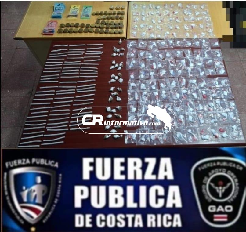 Y fue en la vía pública de dicha zona que, el GAO de la Fuerza Pública de San José ubicó un bolso con 140 dosis de aparente cocaína, 109 dosis de aparente marihuana y 123.375 colones, evitando la circulación de la ilícita mercancía en las comunidades.