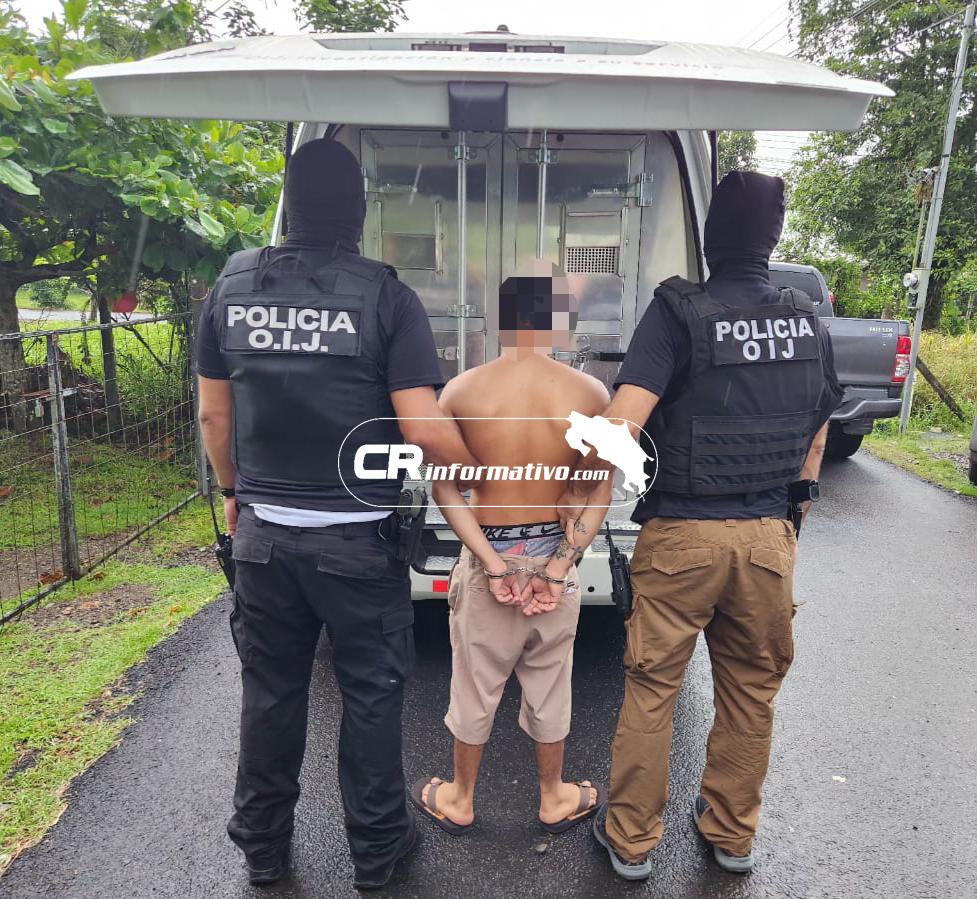 Agentes del Organismo de Investigación Judicial (OIJ) destacados en la sede de Sarapiquí ejecutaron esta mañana un allanamiento en una vivienda ubicada en el sector de La Victoria, en Horquetas, donde fue detenido un hombre de 20 años, identificado con el apellido Castro.
