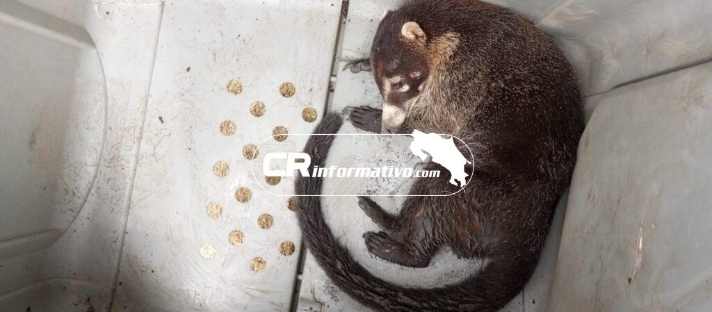 Posteriormente lo llevaron hasta el puesto de Kilómetro 35 de la Policía de Fronteras en Guaycará de Golfito, pero al llegar a ese sitio el pizote trató de escapar, por lo cual los policías fronterizos tuvieron que recapturarlo.