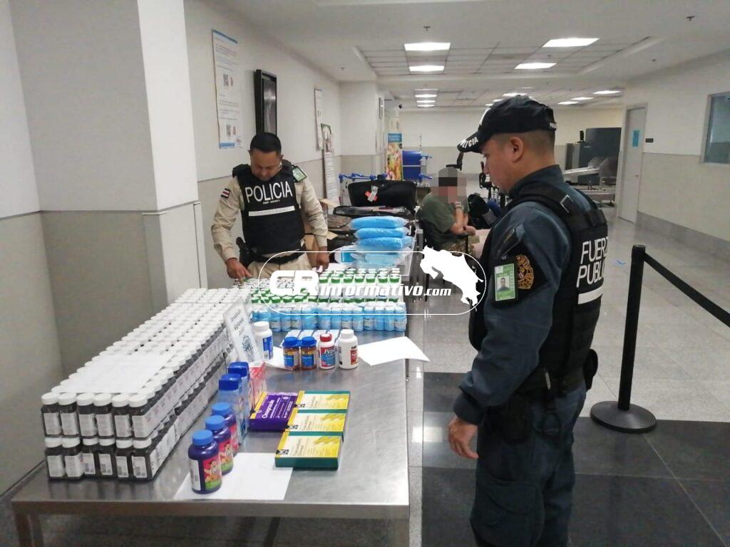 Durante una inspección realizada por la Policía Aeroportuaria del Servicio de Vigilancia Aérea (SVA), en conjunto con el Servicio Nacional de Aduanas y autoridades destacadas en el Aeropuerto Internacional de Guanacaste, oficiales decomisaron un cargamento ilegal de medicamentos a dos pasajeros extranjeros.