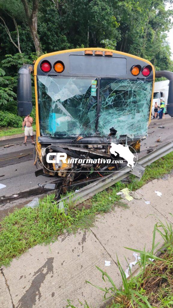 Un aparatoso accidente se registró esta tarde en el sector de Caletas, luego de que un autobús que transportaba a un equipo infantil de fútbol de Quebrada Ganado se quedara sin frenos y colisionara contra varios vehículos.