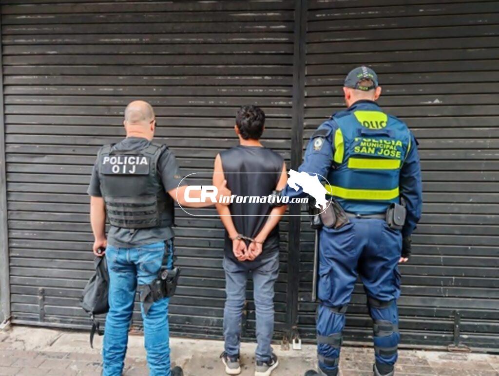 Razón por la cual, se le detuvo en vía pública en el sector de Calle 2 en el centro de San José.