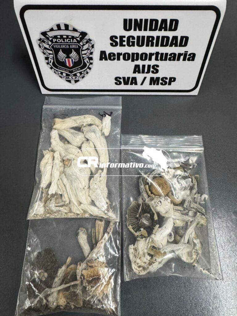 Además, en una operación adicional en la misma terminal aérea, se procedió con el decomiso de picadura de marihuana, 20 gomitas comestibles con THC, un vaporizador con THC y hongos alucinógenos que eran transportados en el equipaje de dos ciudadanos estadounidenses.