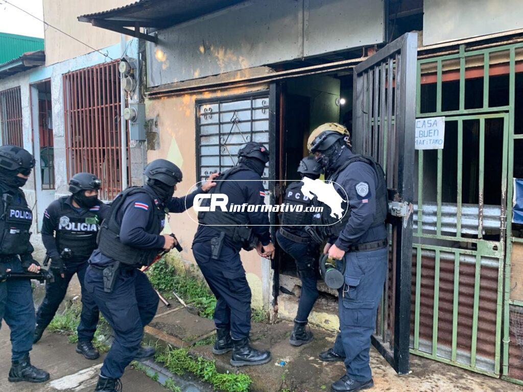 La Policía de Control de Drogas ( PCD) en coordinación con la Fiscalía de Alajuela, efectúa esta mañana cuatro allanamientos a viviendas ubicadas en el sector de Copán, en Montecillos, con el fin de intervenir una narcoestructura que opera de forma violenta en la zona.