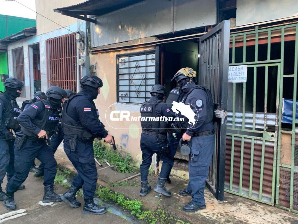 La Policía de Control de Drogas ( PCD) en coordinación con la Fiscalía de Alajuela, efectúa esta mañana cuatro allanamientos a viviendas ubicadas en el sector de Copán, en Montecillos, con el fin de intervenir una narcoestructura que opera de forma violenta en la zona.