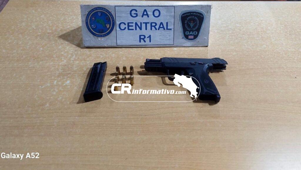 Siempre en Pavas, la Fuerza Pública aprehendió, en las cercanías de la Rotonda del INA, a un sujeto de apellido Arce, quien tenía en su poder una pistola calibre 9 m.m. provista de 12 proyectiles, sin documentación alguna del arma, por lo que fue remitido a la Fiscalía de Flagrancia.
