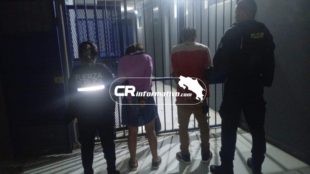 Oficiales de la Fuerza Pública, destacados en Liberia, Guanacaste, aprehendieron la noche del martes, por la terminal de autobuses de Pulmitan, a dos personas sospechosas de asaltar a un peatón.