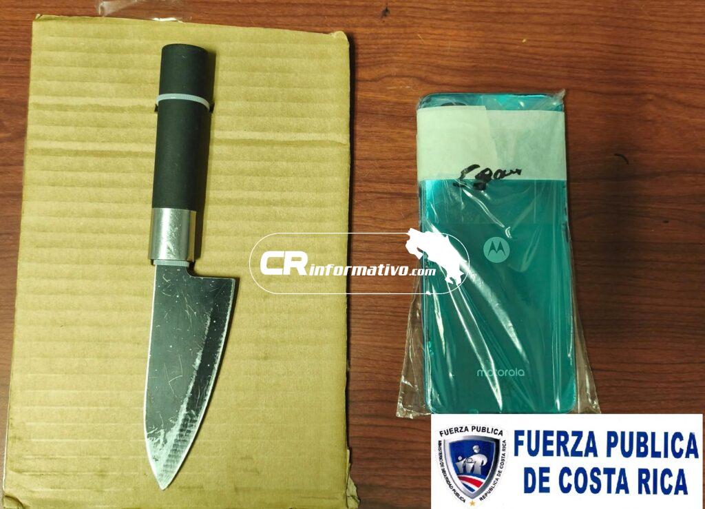 El teléfono fue recuperado y el arma blanca decomisada, tras lo cual los detenidos fueron remitidos esta mañana a la Fiscalía de Flagrancia de Liberia.
