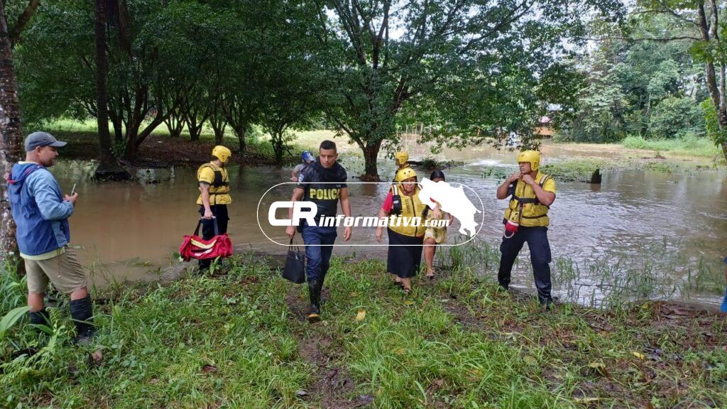 Los oficiales de la Fuerza Pública, destacados en la delegación cantonal de Puerto Jiménez, continúan colaborando, junto con otras instituciones de primera respuesta, en la atención de las personas afectadas por las inundaciones de este fin de semana.