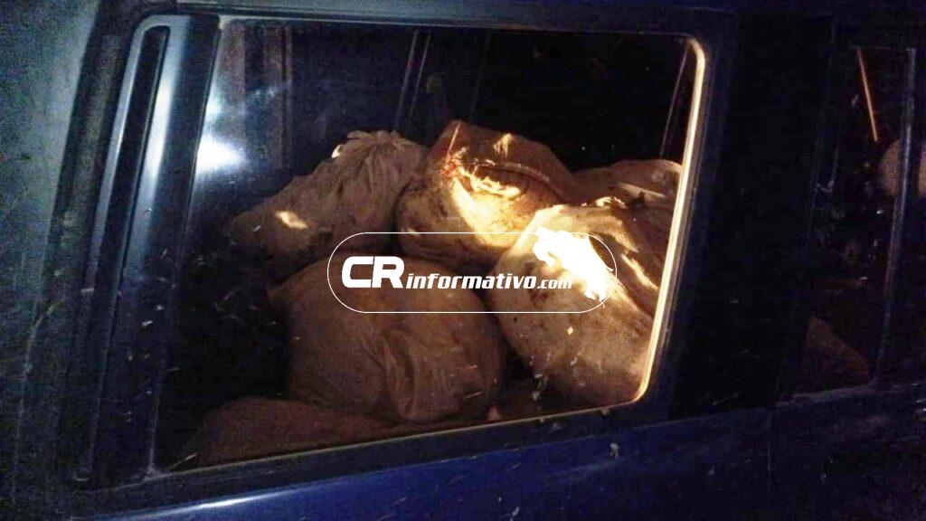 Cerca del vehículo también fue encontrada una carreta, la cual posiblemente acababa de ser descargada, pues detrás de una casa de un sujeto presuntamente vinculado con la minería ilegal en Crucitas, los policías encontraron otros nueve sacos con material minero.