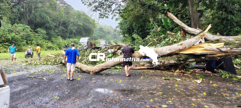Una situación de emergencia se registró este Martes en el distrito de Tárcoles, cantón de Garabito, cuando un árbol de gran tamaño cayó repentinamente sobre un puesto de venta de caldosas, ubicado a un costado de la gasolinera Trova.