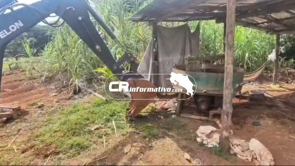 Se trata de una máquina denominada rastra, con una mayor capacidad que las tómbolas para procesar sedimento minero, la cual fue localizada dentro de una finca situada en la localidad de San Luis de Upala, a más de 100 kilómetros de Crucitas.