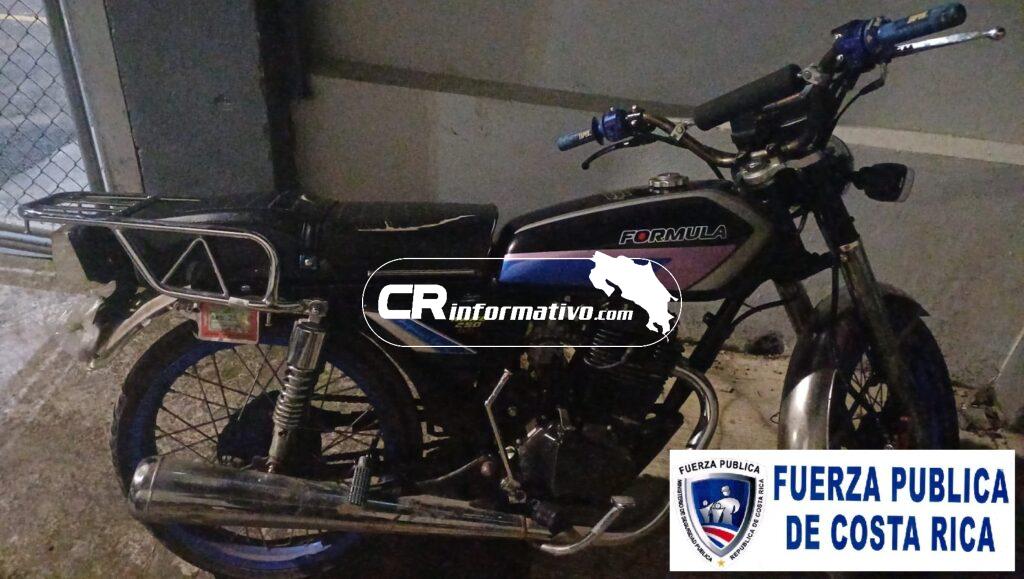 Como parte de las intervenciones que realiza a diario en Aserrí la Fuerza Pública, a fin de prevenir y combatir el narcomenudeo, los delitos contra la vida y la propiedad, durante los últimos días un prófugo de la Justicia fue detenido, así como dos posibles vendedores de drogas, en tanto que una motocicleta presuntamente robada fue recuperada.
