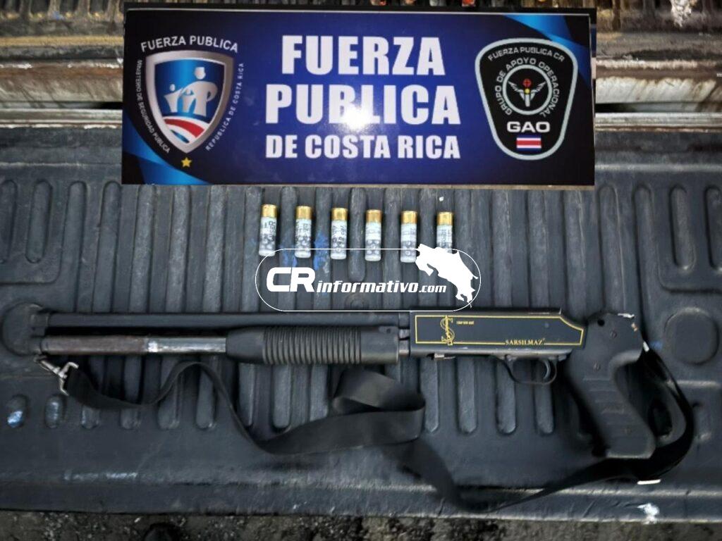 Una de las armas fue localizada a la orilla de una calle en las cercanías de la clínica del distrito de Pocora, cantón de Pococí, Limón. Se trata de una escopeta calibre 12, junto a la cual los oficiales encontraron seis municiones.