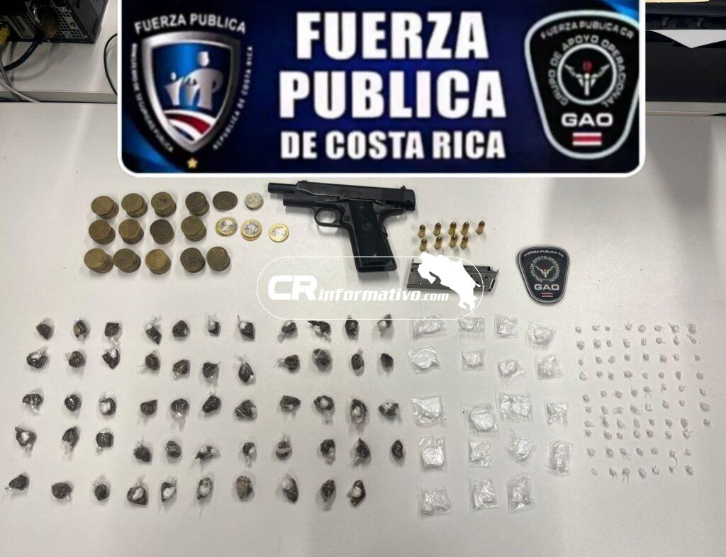 Con el objetivo de prevenir la comisión de delitos contra la vida, contra la propiedad y el narcomenudeo, la Fuerza Pública localizó y sacó tres armas de fuego, además de drogas, de las calles de Pococí y cantones del sur de San José.