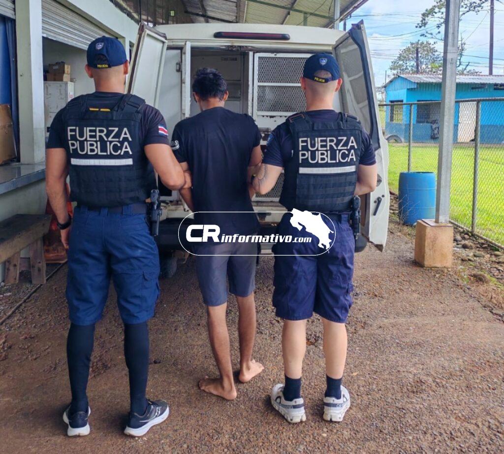 Personal de la Fuerza Pública, destacado en el distrito de Pocosol de San Carlos, frontera norte, aprehendió a un sujeto armado con un machete, el cual estaba alterando el orden público y que, según lo denunciado por un vecino, lo amenazó con dicha arma blanca.
