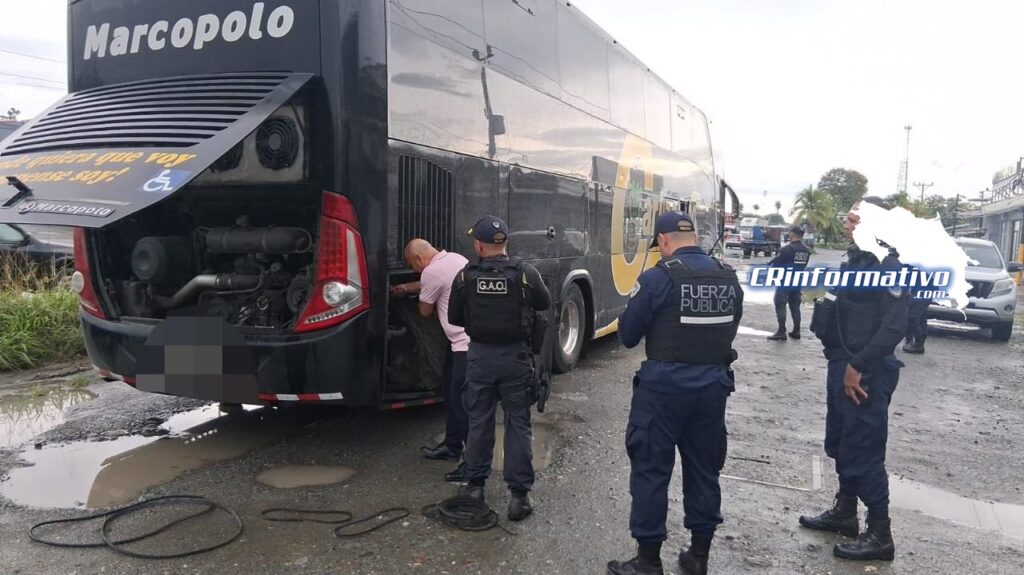 La Fuerza Pública de Limón recibió una alerta sobre el posible transporte de armamento de alto calibre en un autobús que se dirigía hacia la provincia. De forma inmediata, los oficiales activaron dispositivos en carretera e interceptaron la unidad antes de su ingreso a Limón.