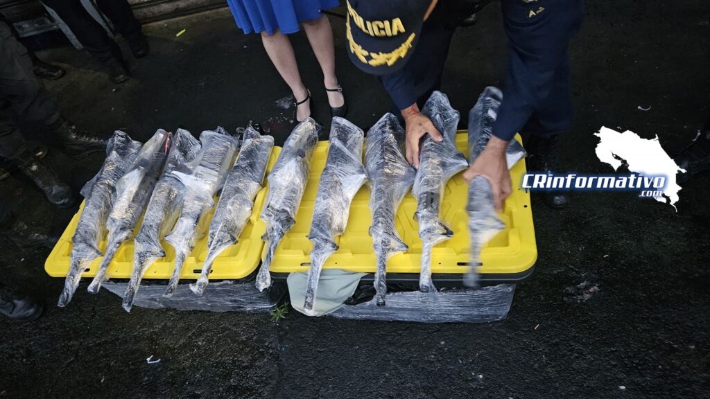 Posteriormente, el can especializado marcó positivo en el compartimento de equipaje, específicamente en dos cajas plásticas. Tras las coordinaciones con la Fiscalía de Limón y siguiendo la dirección funcional, se procedió a la apertura de los contenedores, encontrando en cada uno cinco armas largas tipo AR-15, cada una con su respectivo cargador.