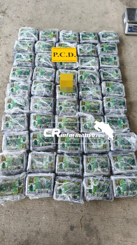 La embarcación detenida ayer jueves por oficiales del Grupo de Operaciones Especiales (GOPES) del Servicio Nacional de Guardacostas del Ministerio de Seguridad Pública a 50 millas náuticas al sur del Cabo Matapalo en el Pacífico Sur, transportaba un total de 2,504 paquetes con marihuana, con pesos diferentes que iban aproximadamente de 500 gramos a un kilo.