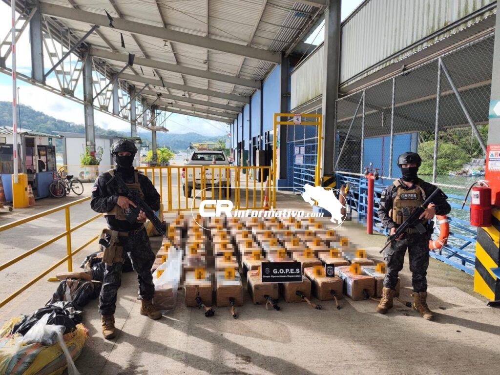 Esta embarcación fue llevada hasta el Puerto de Golfito, donde la Policía de Control de Drogas (PCD) realizó las diligencias judiciales del caso; según el informe policial, se decomisaron un total de 1.242 paquetes de cocaína y 227 paquetes de marihuana.