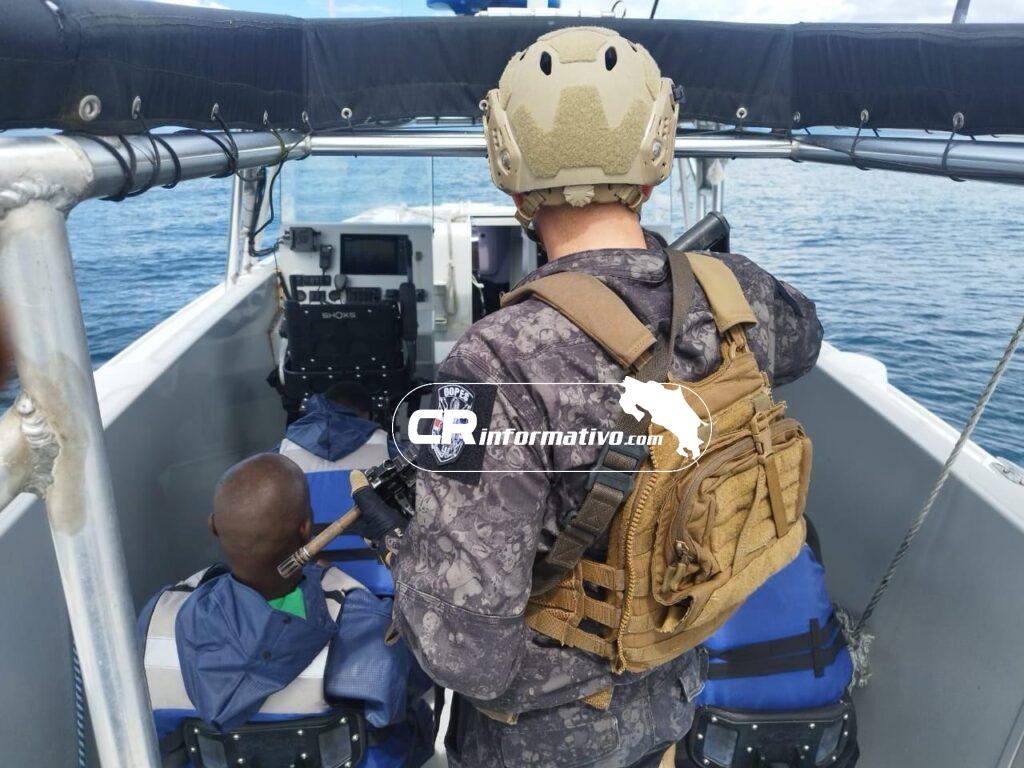 La detención se realizó a 150 millas náuticas de Puerto Golfito; la lancha es marca Nauta, no mantenía nombre ni matrícula, está equipada con dos motores fuera de borda y con 14 estañones para cargar combustible.