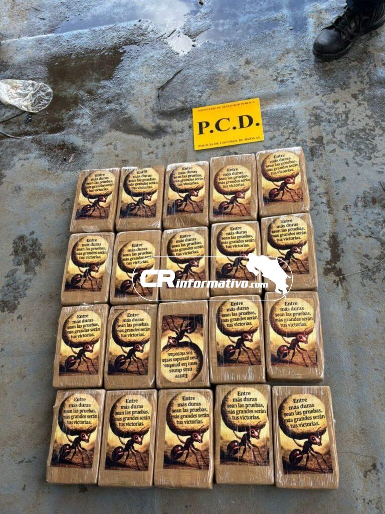 Esta embarcación fue llevada hasta el Puerto de Golfito, donde la Policía de Control de Drogas (PCD) realizó las diligencias judiciales del caso; según el informe policial, se decomisaron un total de 1.242 paquetes de cocaína y 227 paquetes de marihuana.